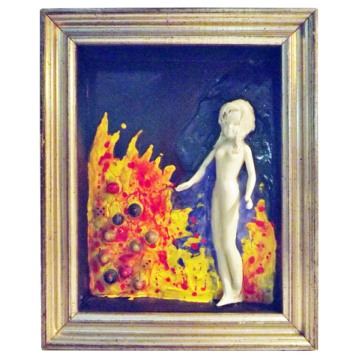 Painting of a nude young woman sitting on a stool. Oil on wood. Unframed...